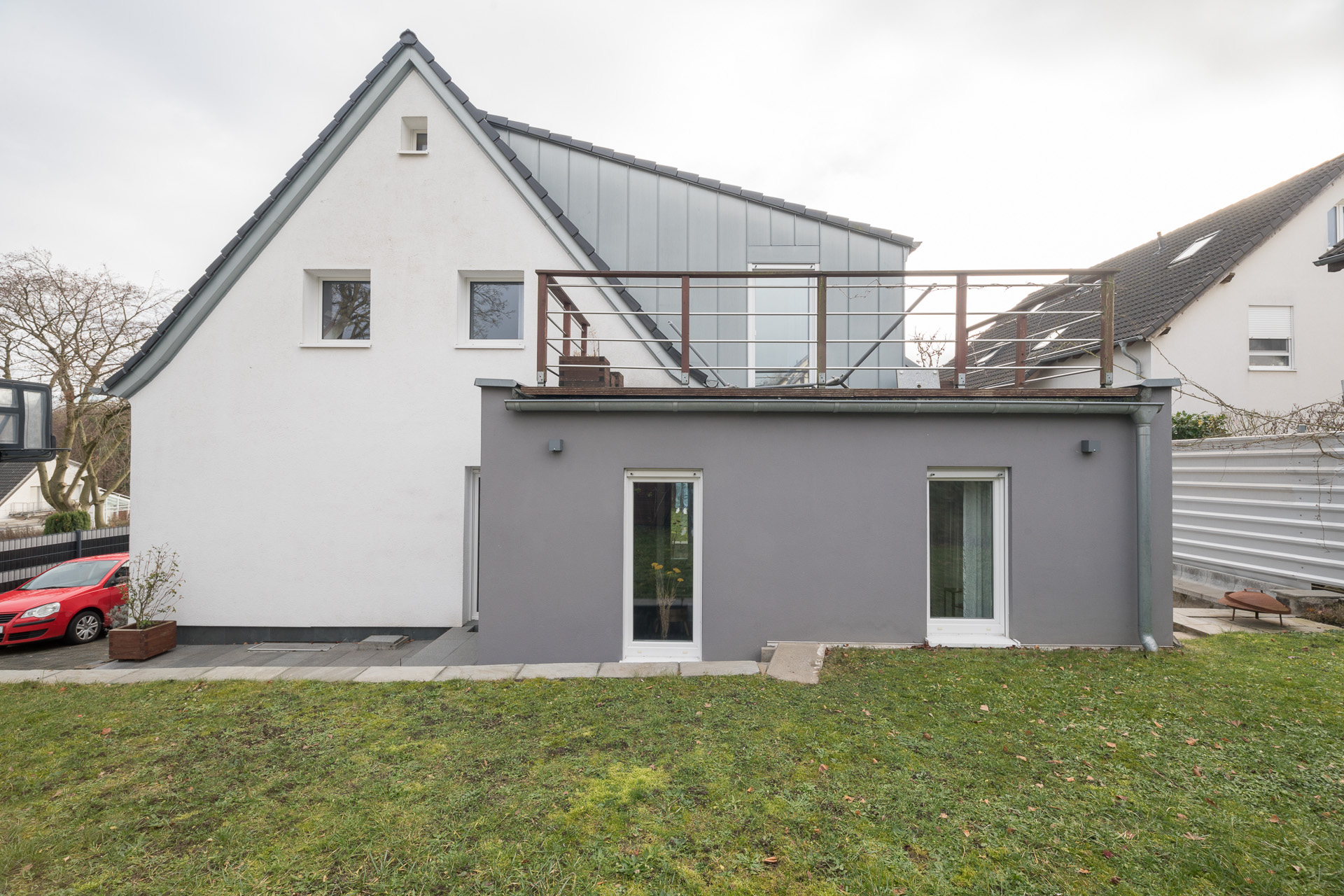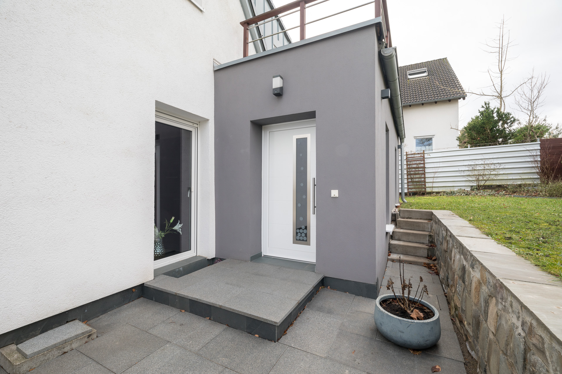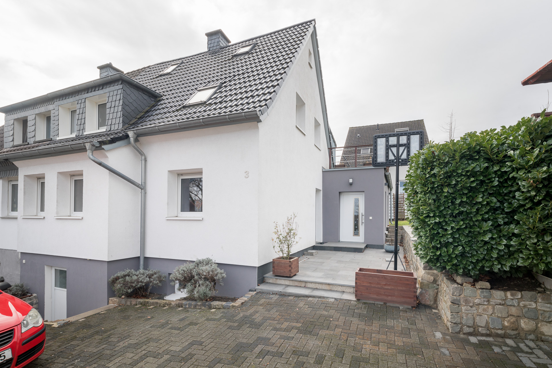 Besondere Highlights sind die großzügige Dachterrasse sowie eine Terrasse im Erdgeschoss mit angrenzendem Garten. Zwei Stellplätze direkt vor dem Haus runden das Angebot ab.